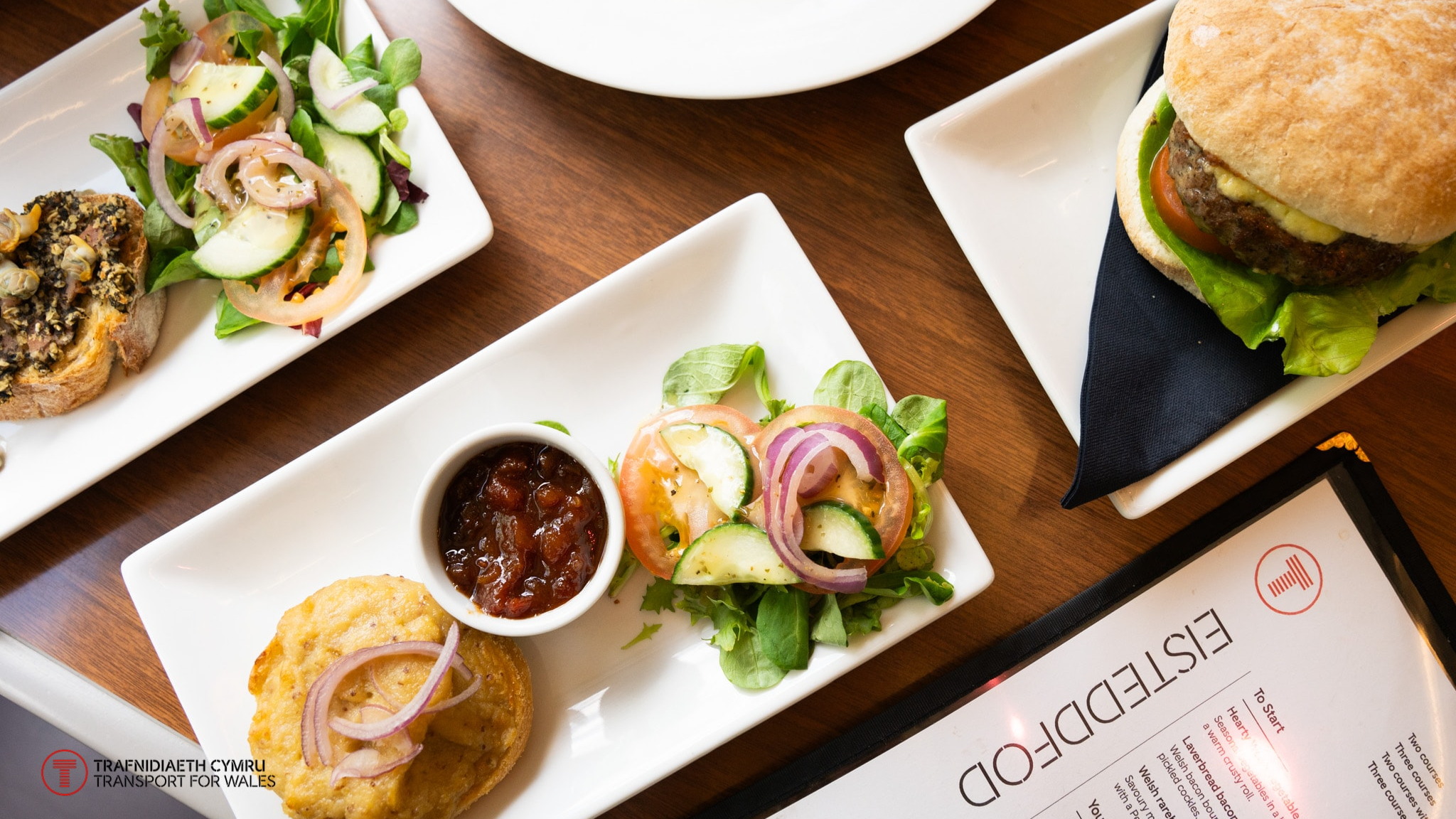 Oeddech chi'n gwybod ein bod ni'n cynnig gwasanaeth bwyty Dosbarth Cyntaf ar ein trenau? Ar wasanaethau penodol rhwng Abertawe a Manceinion a rhwng Caerdydd a Chaergybi, gallwch gael blas ar yr Eisteddfod wrth i chi deithio. Mae'r fwydlen 3 chwrs unigryw bellach ar gael ac mae'n cynnwys bacwn bara lawr, cawl cysurus, byrgyrs 'steddfod ac yn goron ar y cyfan – pwdin bara menyn bara brith.