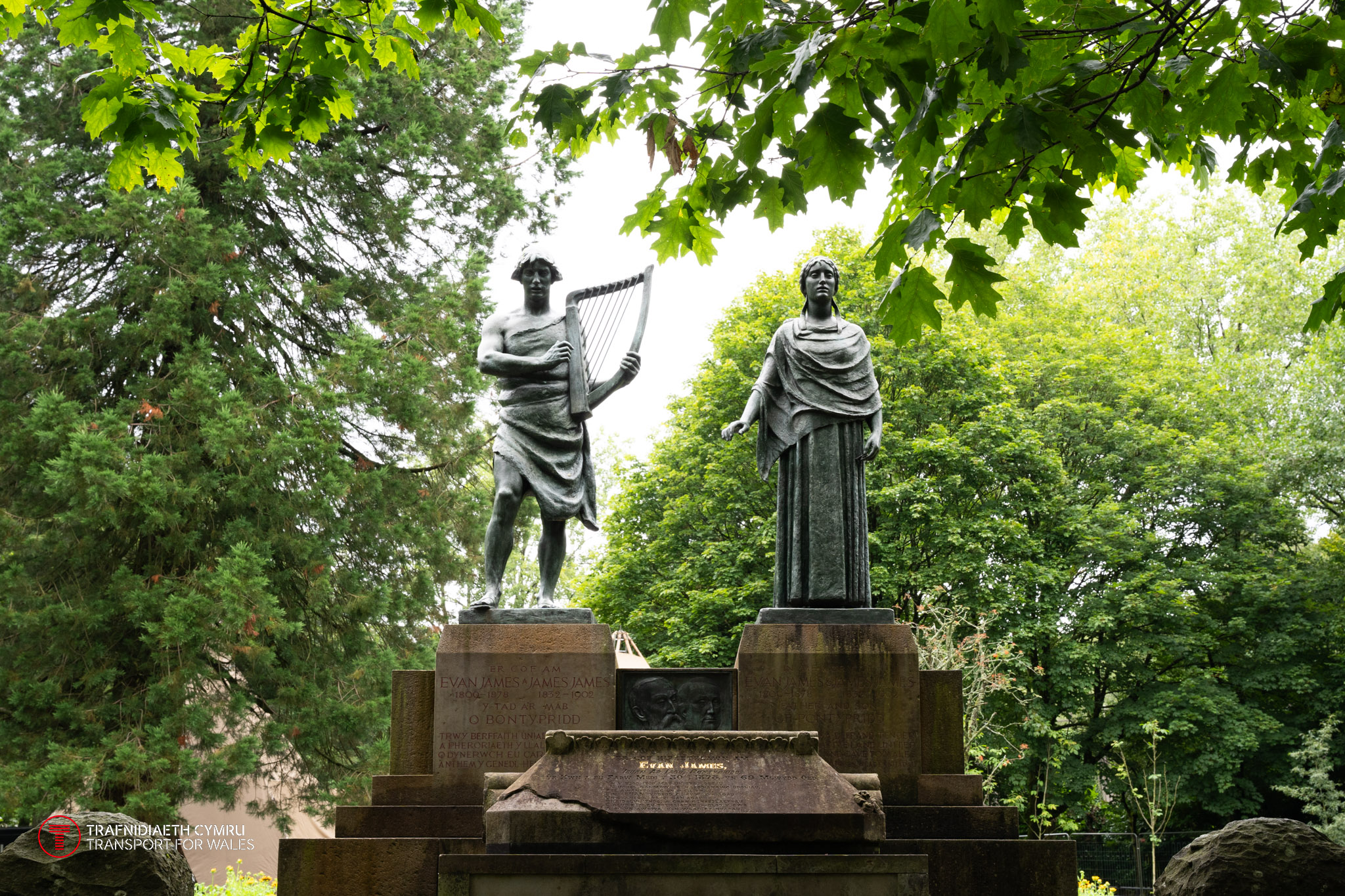 Pan fyddwch yn ymweld â pharc Ynysangharad, edrychwch ar y gofeb efydd a godwyd er cof am Evan James a James James a gwrandewch ar yr anthem eiconig.