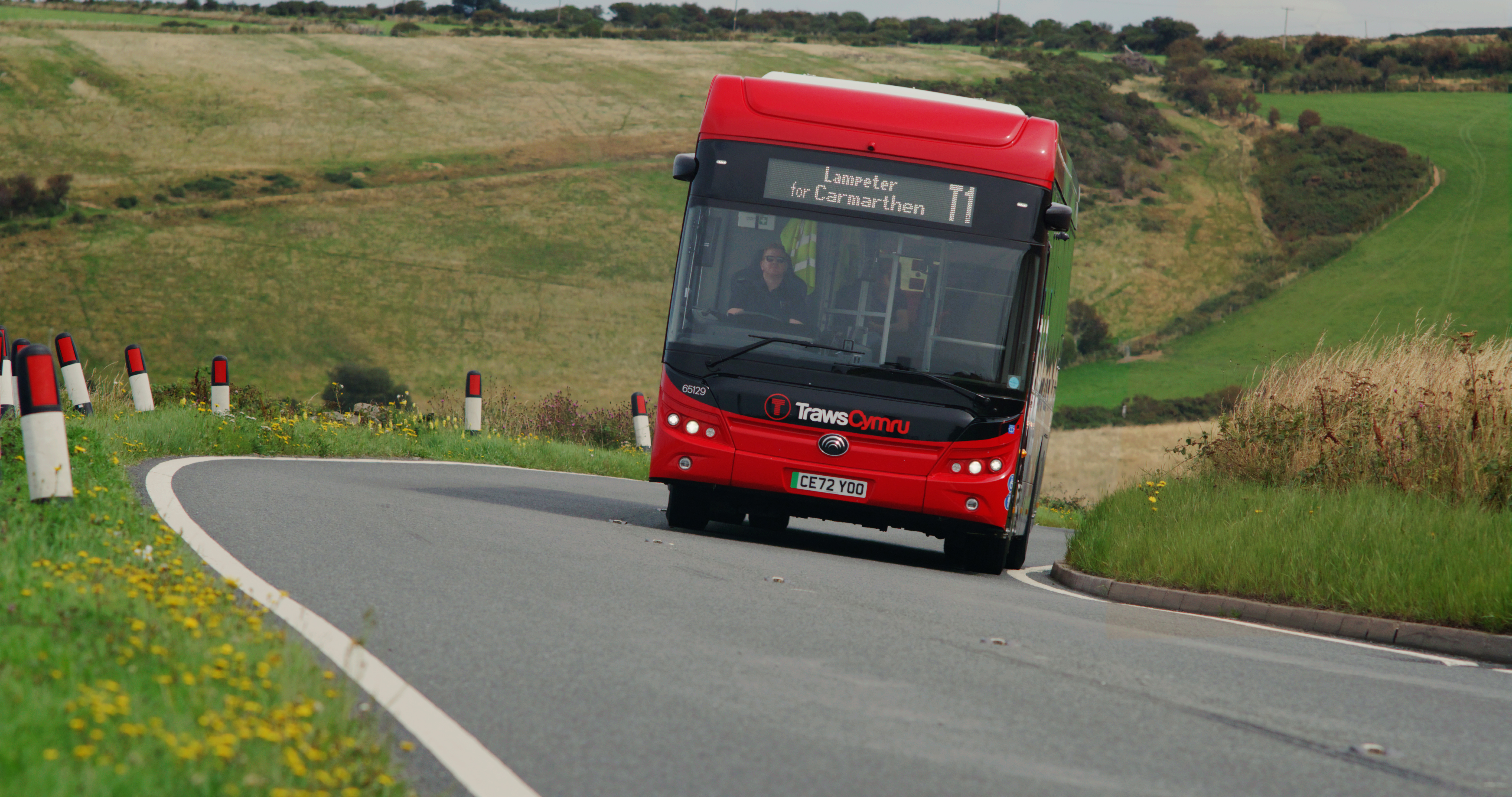 Mae’r gwasanaeth T1 rhwng Caerfyrddin ac Aberystwyth yn cynnig bysiau trydan o’r radd flaenaf. Ymysg y cyfleusterau, mae gwefru ffôn symudol diwifr, golau darllen, bachau cot a seddi cyfforddus er mwyn gwella’ch taith.