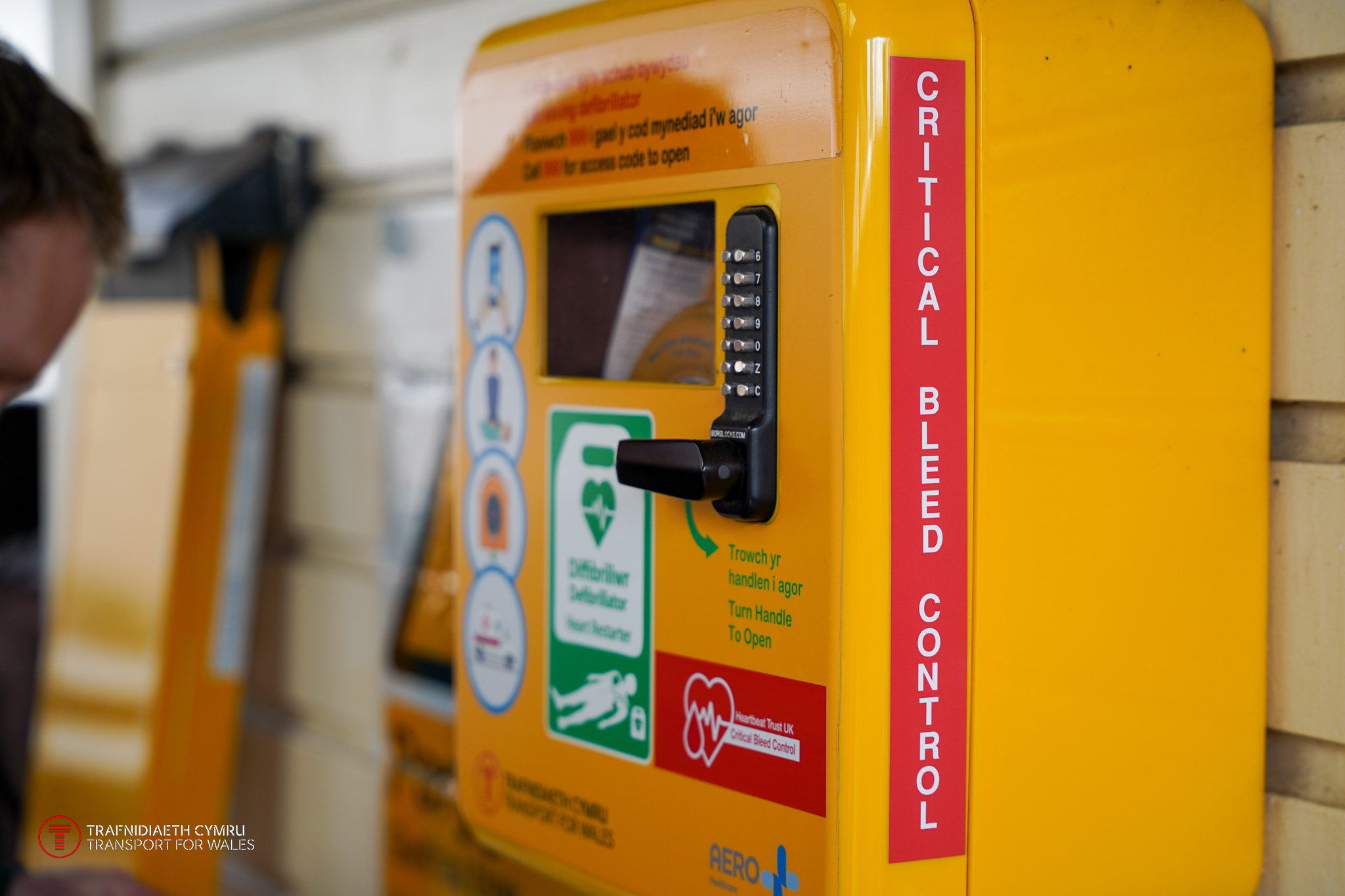 Mae Trafnidiaeth Cymru wedi partneru â Heartbeat Trust UK i gefnogi gosod 18 o becynnau rheoli gwaedu mewn gorsafoedd ledled Caerdydd.