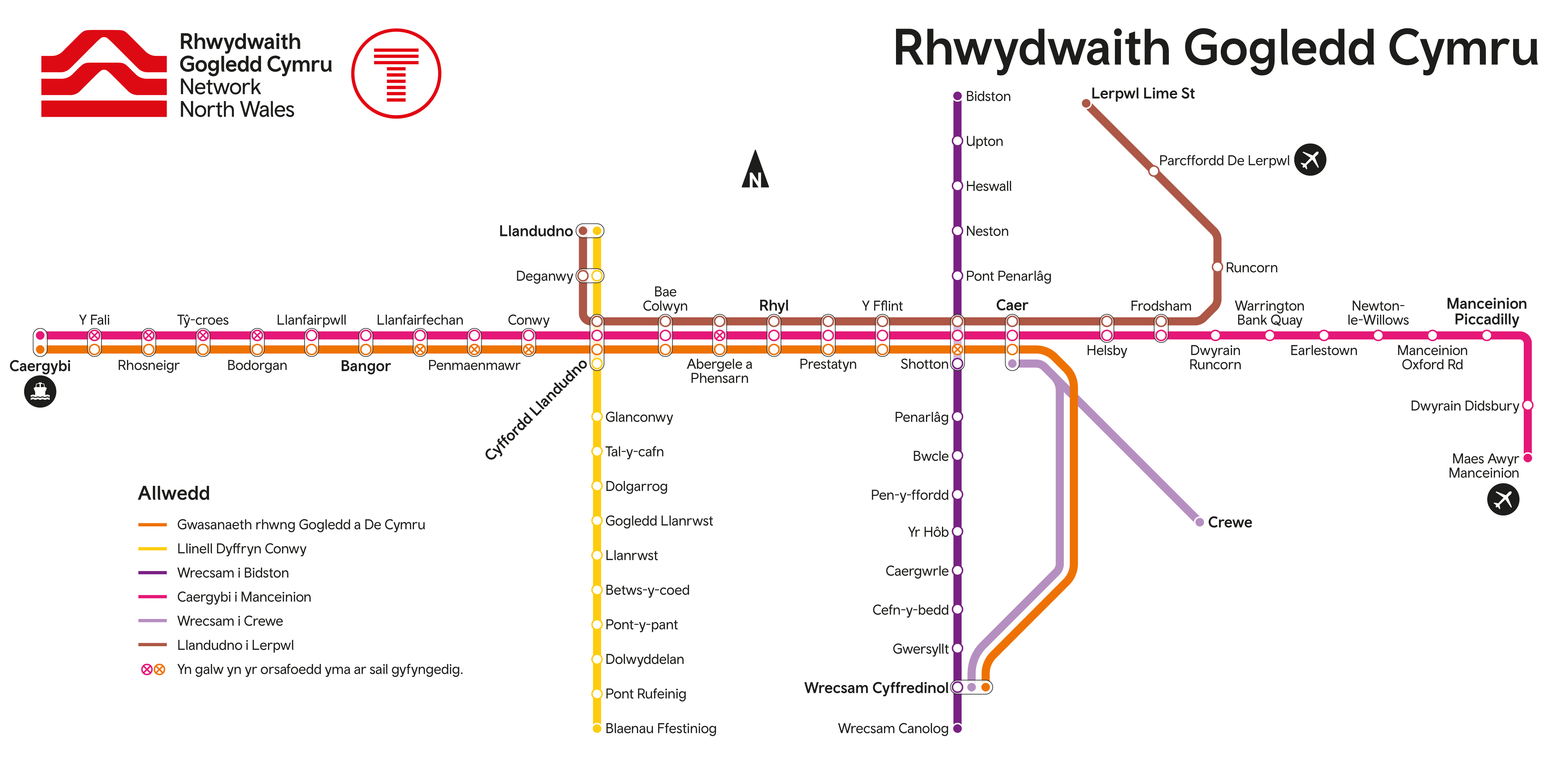 - Bydd trenau o Faes Awyr Manceinion i Landudno nawr yn gwasanaethu Caergybi yn lle hynny, gan wella cysylltiadau â Gogledd-orllewin Lloegr a gwella cysylltiadau gyda'r fferi i Iwerddon o Fanceinion.