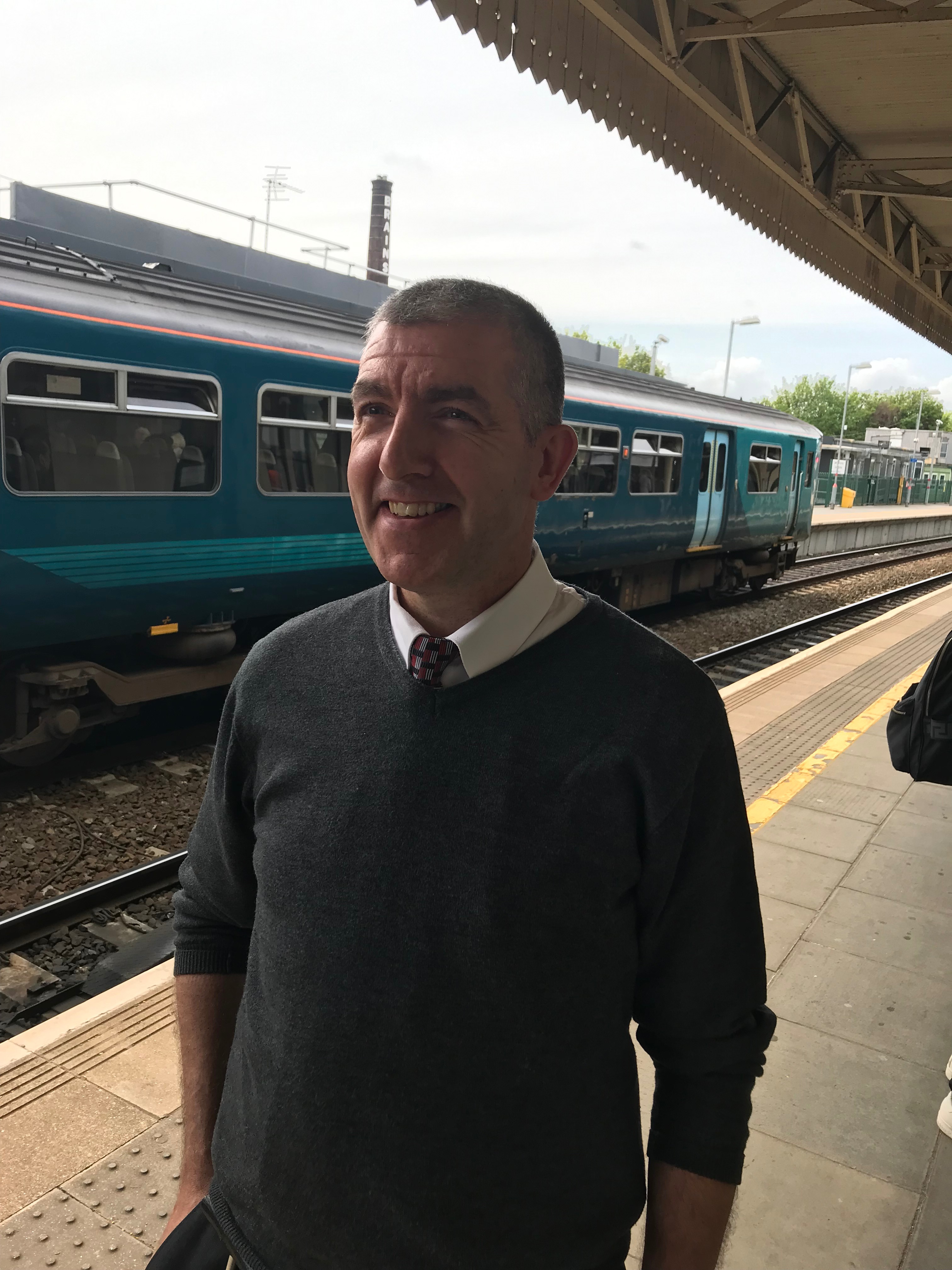Ymunodd Alan Walton fel Goruchwyliwr 11 o flynyddoedd yn ôl ar ôl gyrfa yn y gwasanaeth carchardai. Cafodd ei ddyrchafu’n Rheolwr Goruchwylwyr, cyn gwireddu ei freuddwyd o yrru trên. Dywedodd: “Rydw i’n falch iawn o gychwyn arni. Fedra i ddim aros i weld y trenau newydd sbon yn y dyfodol.”