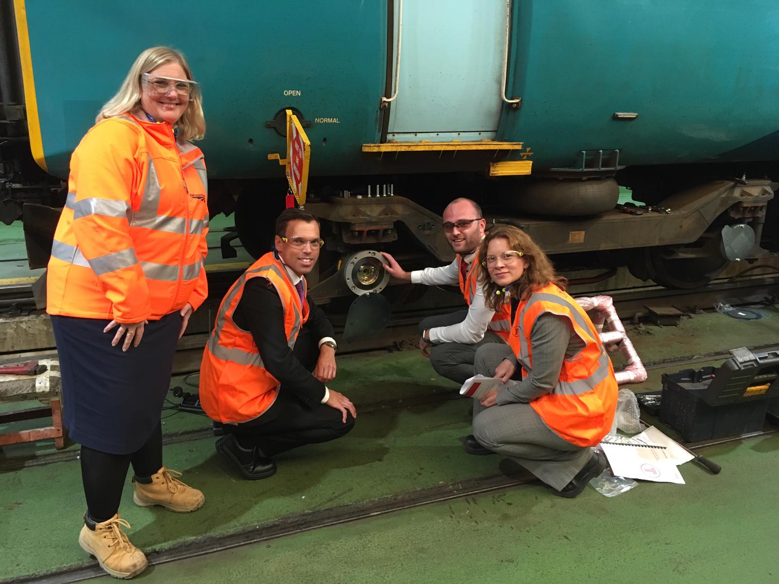 “Mae hi wedi bod yn grêt cael ymweld â depo Treganna bore yma i gwrdd â’r tîm peirianneg yn Trafnidiaeth Cymru a gweld y gwaith sy’n cael ei wneud wrth i’r diwydiant baratoi ar gyfer tymor yr hydref.