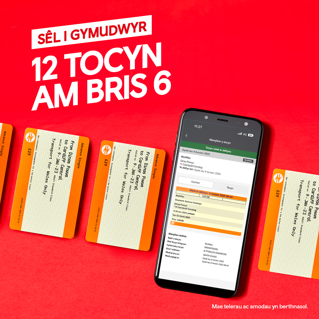 Sêl ar Docynnau Advance (40% i ffwrdd) ar gael 16 -29 Ionawr 2023, ar gyfer teithiau rhwng 30ain Ionawr a 5ed Mawrth. Yn amodol ar argaeledd. I gael rhagor o wybodaeth, ewch i trc.cymru/multiflex