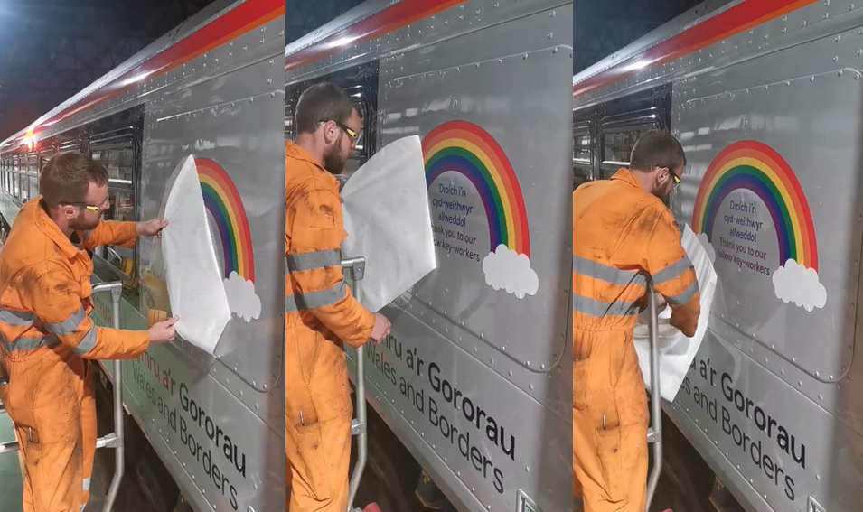 “Hoffwn ddiolch i’r holl weithwyr allweddol, gan gynnwys y rhai sy’n cynrychioli TrC, sy’n wirioneddol ymroddedig ac yn cefnogi’r wlad yn y frwydr yn erbyn Cofid19. Ar draws ein rhwydwaith cyfan rydym wedi gweld ein tîmau yn cydweithio ac mae'n wych ffitio'r sticeri hyn i'n trenau a dangos cefnogaeth i'r rhai ar y rheng flaen. "