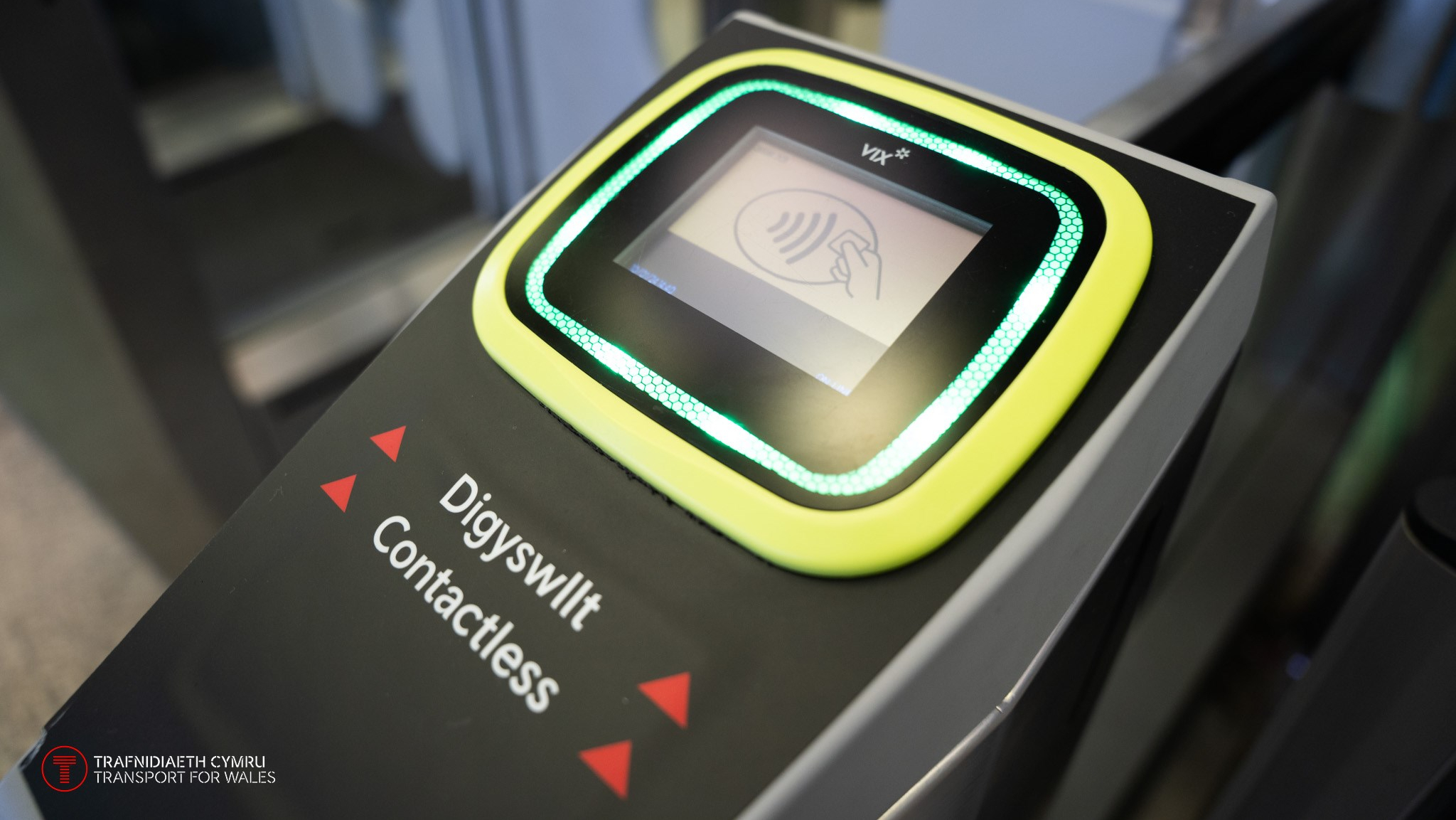 De Cymru yw’r lleoliad cyntaf yn y DU y tu allan i Lundain lle gall teithwyr ar rwydwaith rheilffyrdd ddefnyddio’r dechnoleg troi i fyny a mynd hon.