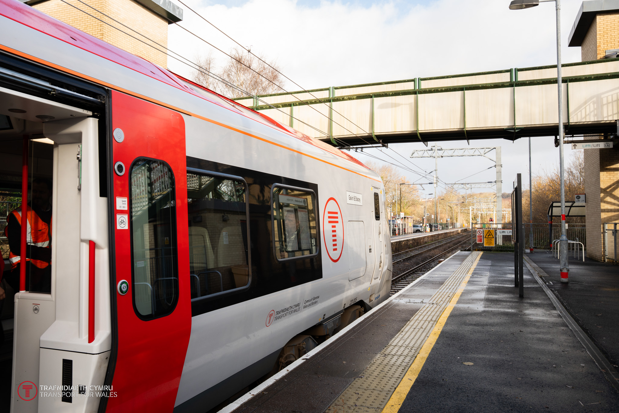 Cafodd gwifrau uwchben ar draws rheilffordd Rhymni eu troi ymlaen y penwythnos diwethaf, gan nodi carreg filltir bwysig arall i'r prosiect, yn ogystal ag agoriad swyddogol diweddar depo Metro De Cymru yn Ffynnon Taf gan Ei Fawrhydi'r Brenin Charles.