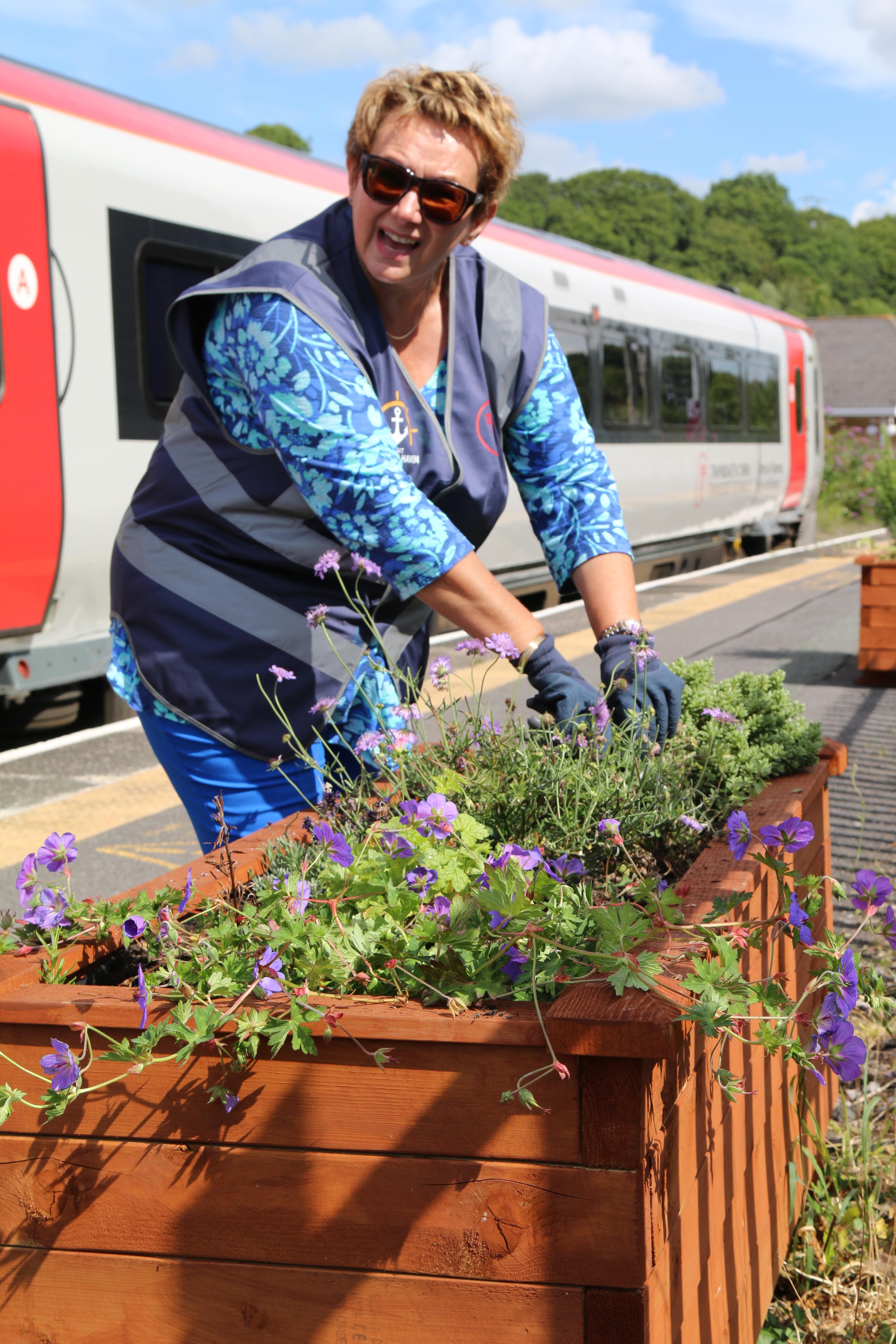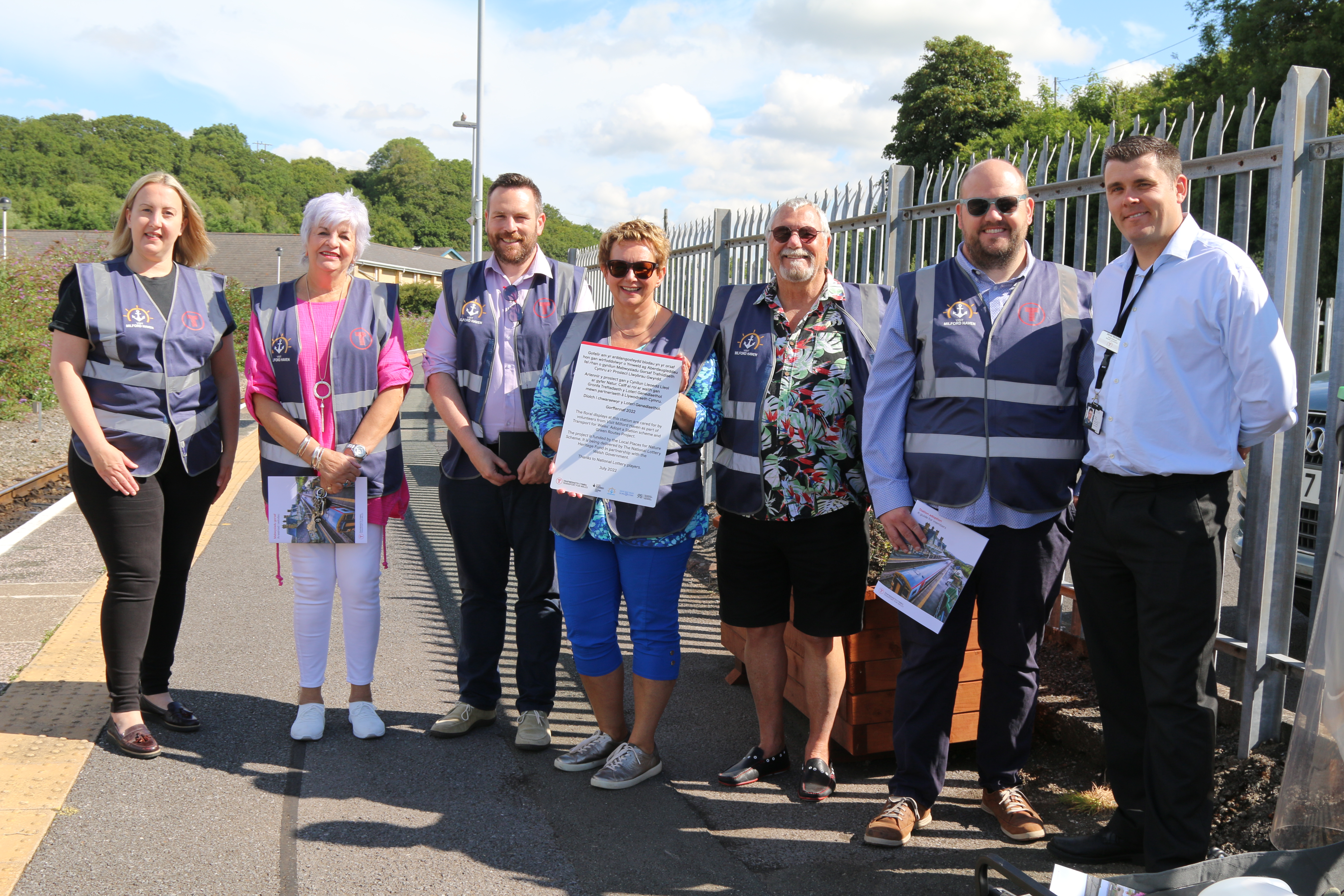Mae Trafnidiaeth Cymru yn gweithio’n agos gyda mabwysiadwyr gorsafoedd a gwirfoddolwyr o Croeso Aberdaugleddau fel rhan o’n Prosiect Mabwysiadu Gorsaf a Llwybrau Gwyrdd.