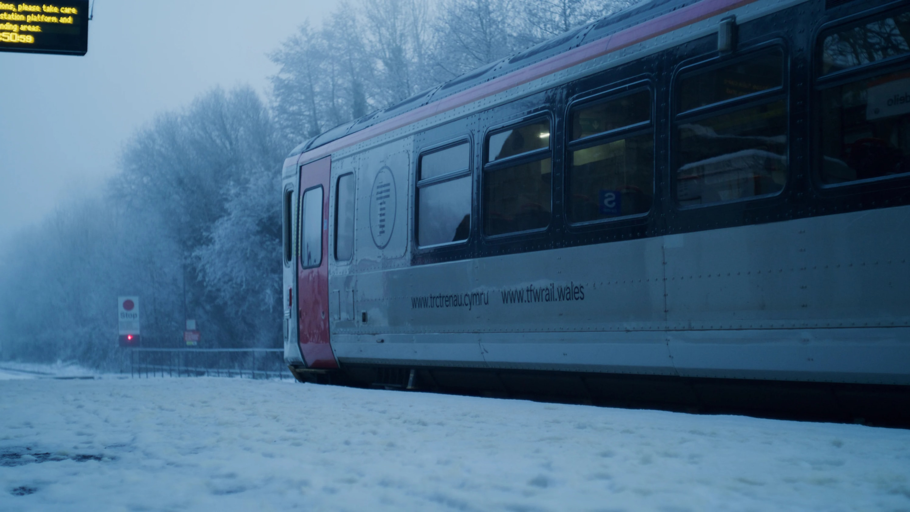 “Parhewch i wirio cyn i chi deithio a chaniatewch amser ychwanegol ar gyfer eich taith. Cymerwch ofal wrth deithio i ac o orsafoedd gan y gallai rhai arwynebau fod yn llithrig o hyd.”