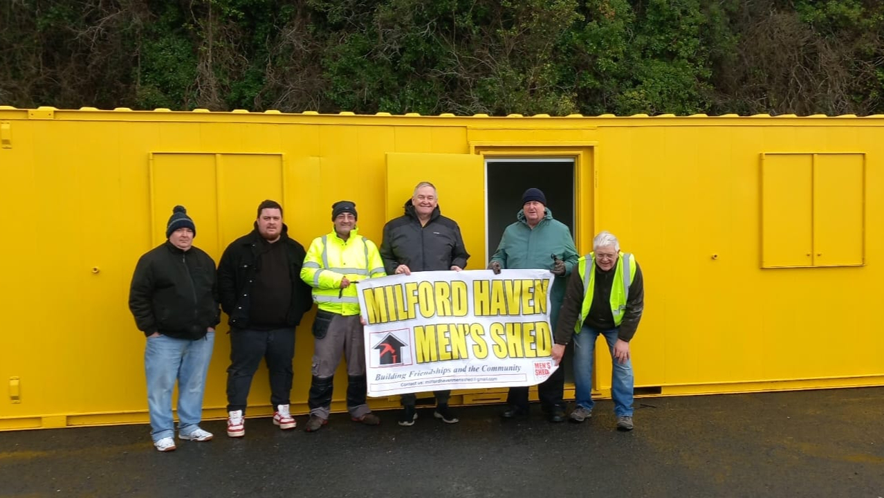 Gwnaeth pwyllgor ‘Men’s Shed’ yn Aberdaugleddau ddiolch i TrC am y cyfle i’r gymuned hŷn gael ‘hafan’ eu hunain i wneud cyfeillion a chefnogi llesiant mewn amgylchedd diogel.