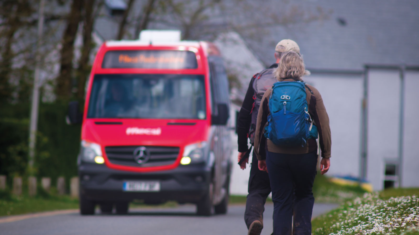 Yn hytrach na bod teithwyr yn aros am y bws wrth safle bws, gallant archebu taith ymlaen llaw gan ddefnyddio ap fflecsi, neu ffonio 0300 234 0300.