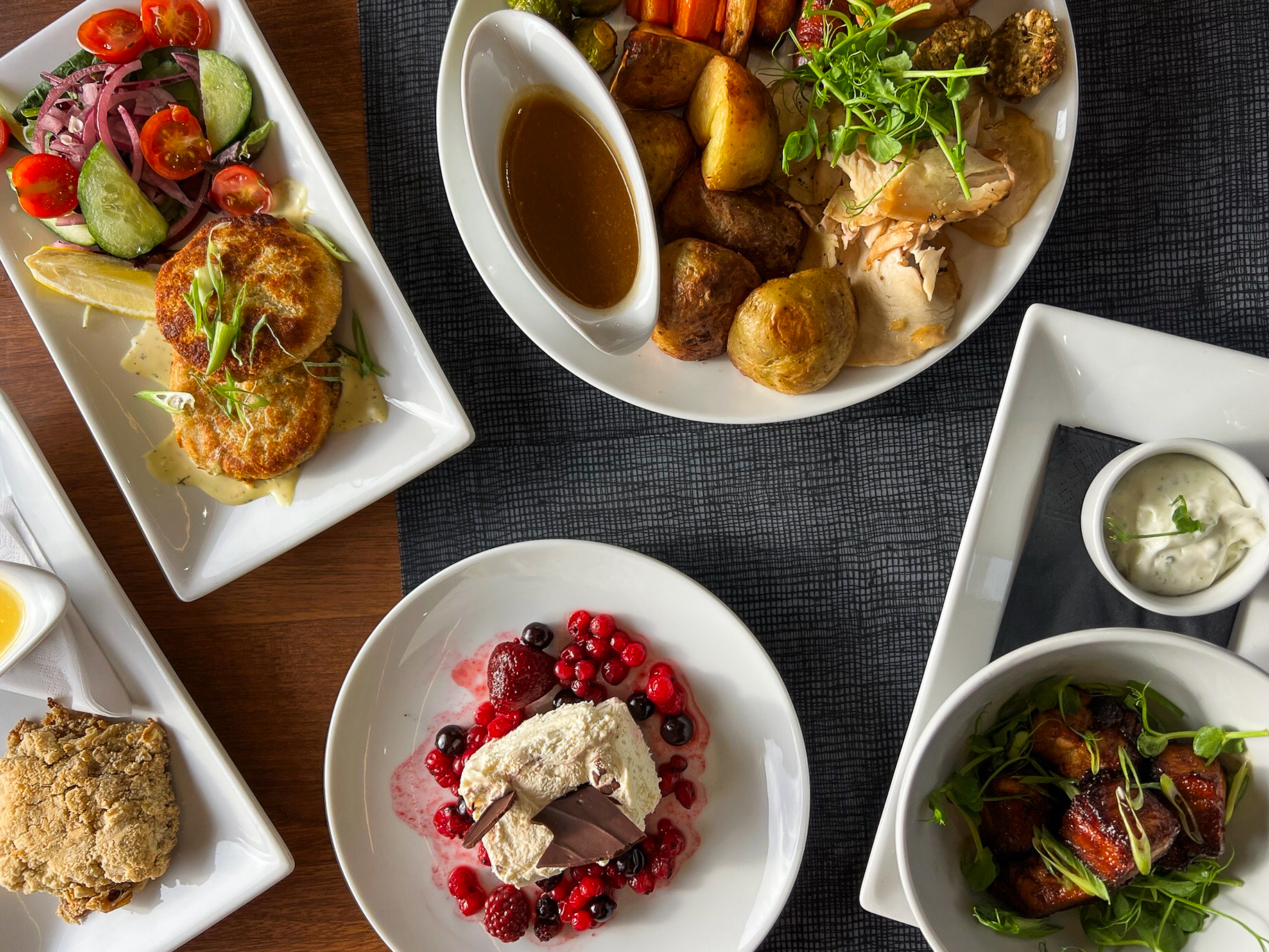 Mae’r platiad bach o fol porc, y cinio Nadoligaidd gyda thwrci gan ddilyn gyda chrymbl Nadoligaidd – mae bwydlen y Nadolig yn ôl! Ydi, mae arlwy Nadoligiadd ar fwrdd trenau Trafnidiaeth Cymru wedi dychwelyd ar gyfer y Nadolig hwn!